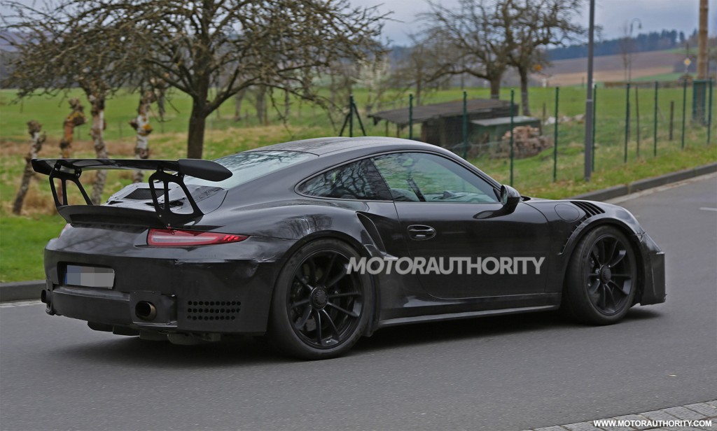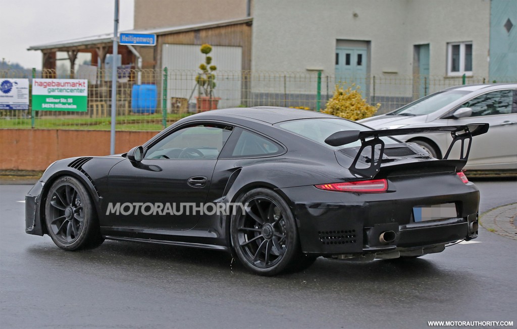 Già annunciata dall’ingegnere capo per il progetto 911, la nuova GT2 sarebbe l’ultimo modello della famiglia 911 di attuale generazione, considerando che Porsche sta già testando il muletto per la prossima. Giudicando da ciò che si può vedere attraverso il leggero camuffamento della GT2 in fase di prova, i primi dettagli che spiccano all’occhio dell’osservatore sono le prese d’aria maggiorate al frontale, di dimensioni decisamente aumentate e dal disegno più squadrato ed aggressivo rispetto alla GT3 RS.